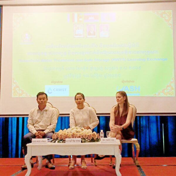 On November 13, 2025, WASH Skills Development Organization organized a Learning Exchange Household Water Treatment and Safe Storages at Tonle Bassac 2 Restaurant, Phnom Penh, under the chairmanship of Ms. Mith Somountha, Deputy Director of the Department Rural Water Supply. The workshop was also attended by the national working group (Rural Water Supply Department of the Ministry of Rural Development), sub-national working groups including: Kandal, Kampong Chhnang, Kampong Speu provincial rural development departments, district administrations, non-governmental organizations, international organizations and private sector, a total of 48 people (15 women). The objectives of this sharing forum are as follows: